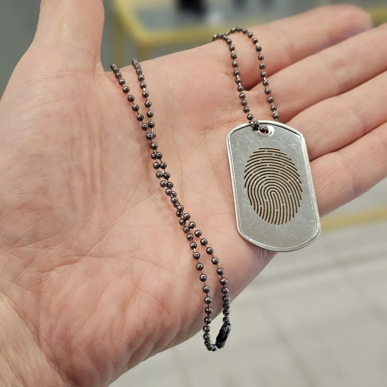 personalized silver pendant featuring intricate laser engraving of a unique fingerprint, showcasing the artistry and precision of custom jewelry creation.
