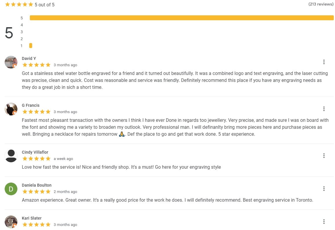 300 glowing reviews and a flawless 5-star rating – a testament to the exceptional laser engraving services offered by Laser Engraving Toronto. This image clearly communicates the outstanding customer satisfaction and high quality that defines this business.